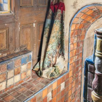 These window treatments were reproduced for Fonthill Castle. Built between 1908 - 1912, Fonthill Castle was the home of Henry Chapman Mercer (1856 - 1930). Archaeologist, anthropologist, ceramist, scholar, and antiquarian, Mercer hand-crafted his castle from concrete. Fonthill served as Mercer's home and as a showplace for his collection of tiles, prints, and other artifacts. During his lifetime, Mercer decided that his home should be a museum and he wanted tours to continue after his passing. Mercer also considered the way he decorated his home to be a composition, so he didn't want anything rearranged. Fortunately his home has been preserved and tours continue today.